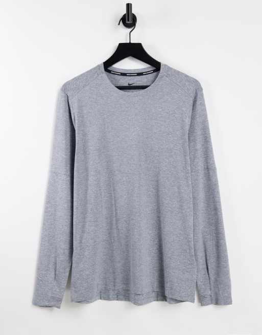 Top gris jaspeado con cuello redondo Element Dri-FIT de Nike Running