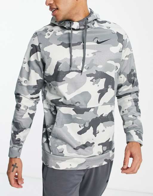 Sudadera gris con capucha y estampado integral de camuflaje Therma-FIT DE nIKE Training