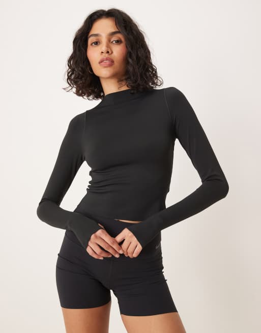 Top negro de manga larga de tejido suave Dri-FIT Zenvy de Nike Training