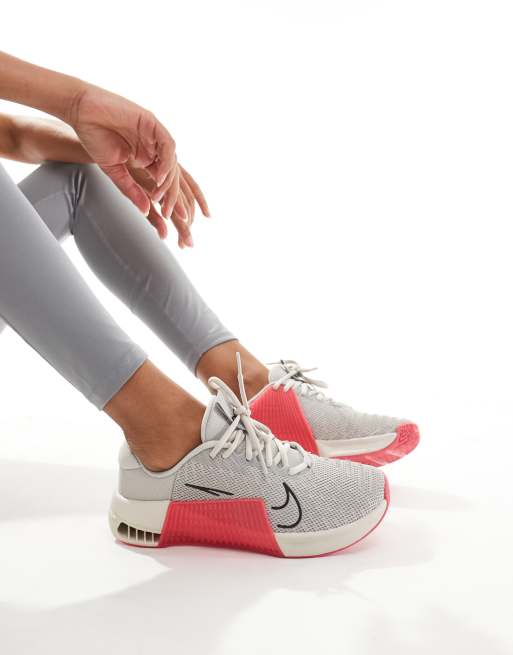 Zapatillas de deporte gris claro y rosas Metcon 9 de Nike Training