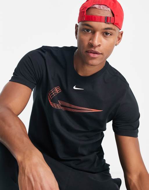 Camiseta negra y roja con estampado gráfico 3D del logo de Nike