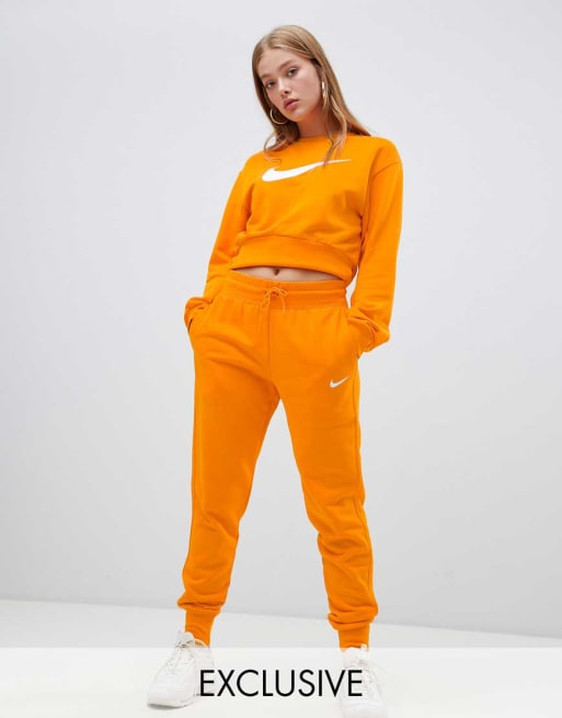 Chándal con joggers y sudadera corta con logo grande en naranja exclusivo en ASOS de Nike