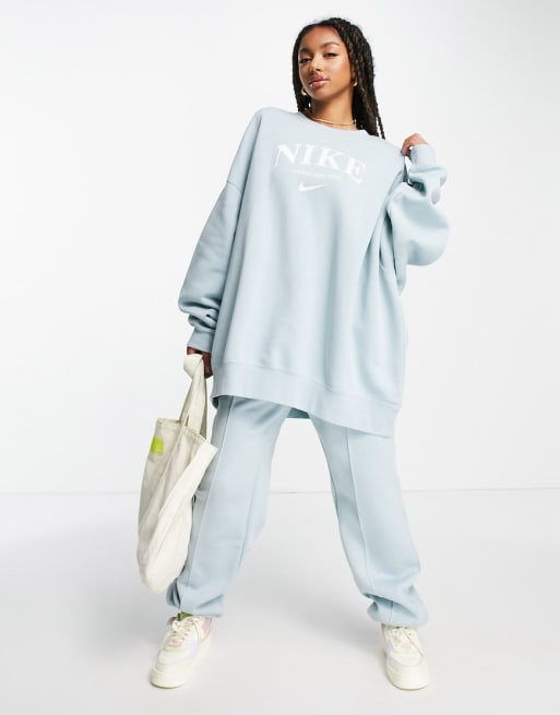 Conjunto azul océano básico con diseño retro de felpa de Nike