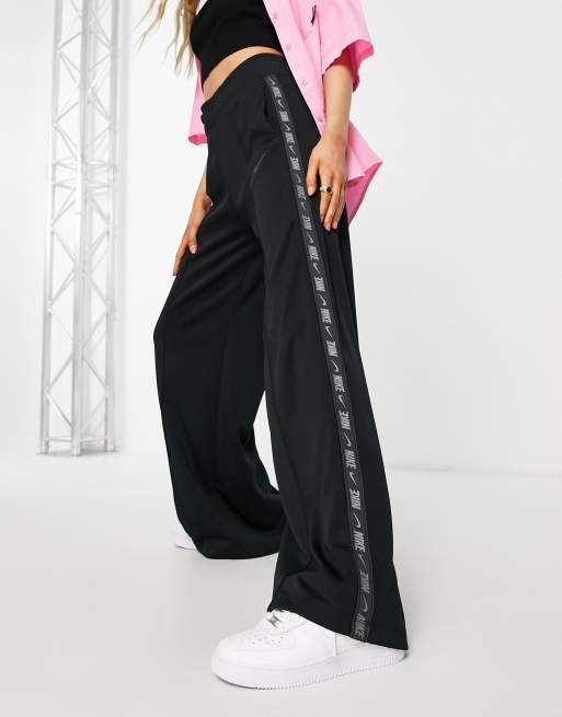 Joggers negros de pernera ancha con cinta del logo de Nike