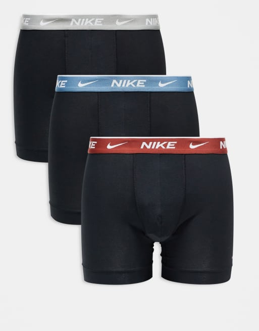 Pack de 3 calzoncillos bóxer negros elásticos con cinturillas en contraste de algodón Everyday Cotton Stretch de Nike