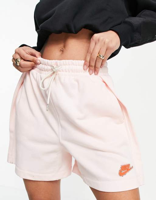 Pantalones cortos rosa perla de talle medio de felpa de Nike