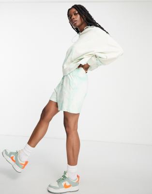 Pantalones cortos verde menta con efecto tie dye y logo pequeño de Nike
