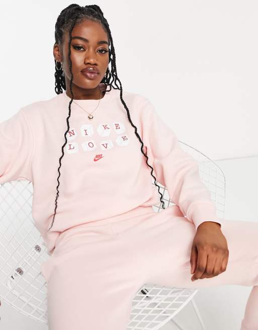 Sudadera rosa extragrande con cuello redondo Love de Nike