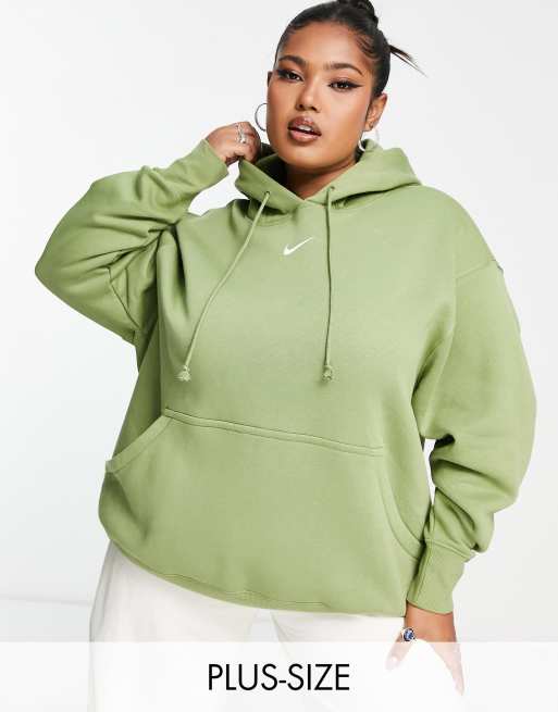 Sudadera verde caimán extragrande con capucha y logo pequeño sin cierres de Nike Plus