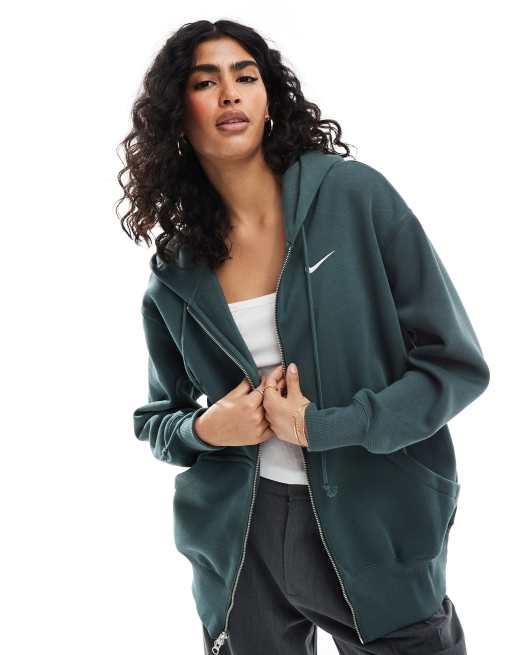 Sudadera verde envejecido extragrande con capucha y media cremallera Phoenix Fleece de Nike