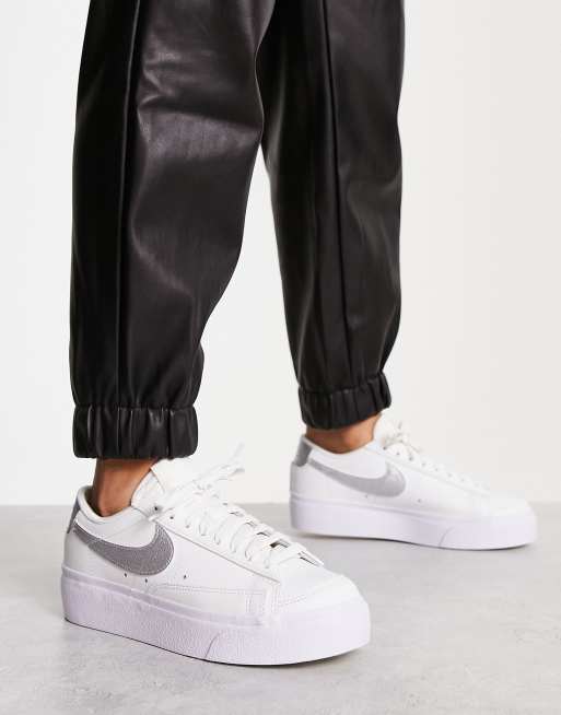 Zapatillas de deporte blancas y plateado metalizado con plataforma Blazer Low Platform de Nike