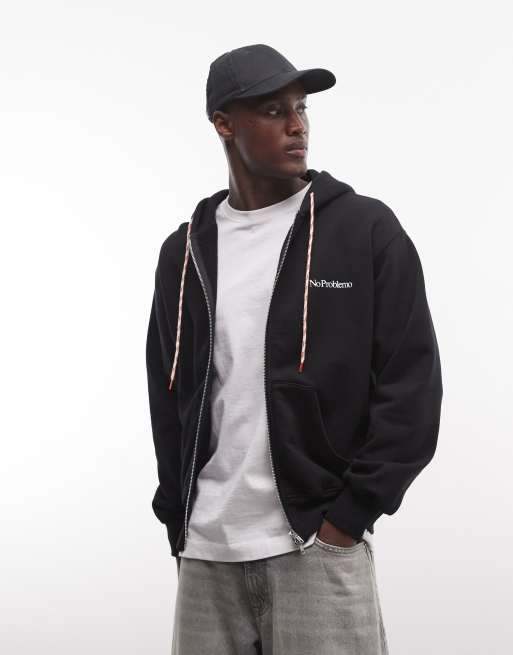 Sudadera negra con capucha, cremallera y logo pequeño de No Problemo