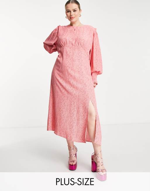 Vestido largo rosa con estampado de garabatos, mangas fruncidas y volantes de Nobody's Child Plus