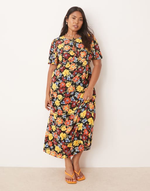 Vestido midi con estampado floral luminoso y mangas acampanadas Anna de Nobody's Child Plus