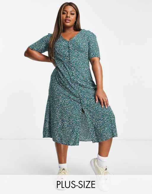 Vestido midi verde esmeralda con estampado de florecitas Alexa de Nobody's Child Plus