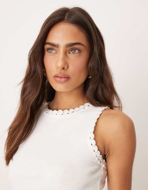 Camiseta blanca sin mangas con cuello de nadadora y ribetes de croché de Nobody's Child