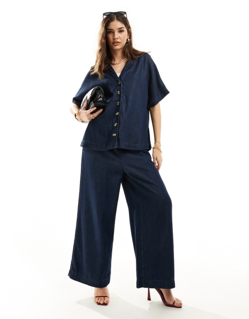 Conjunto azul marino de camisa y pantalones de pernera ancha de Nobody's Child