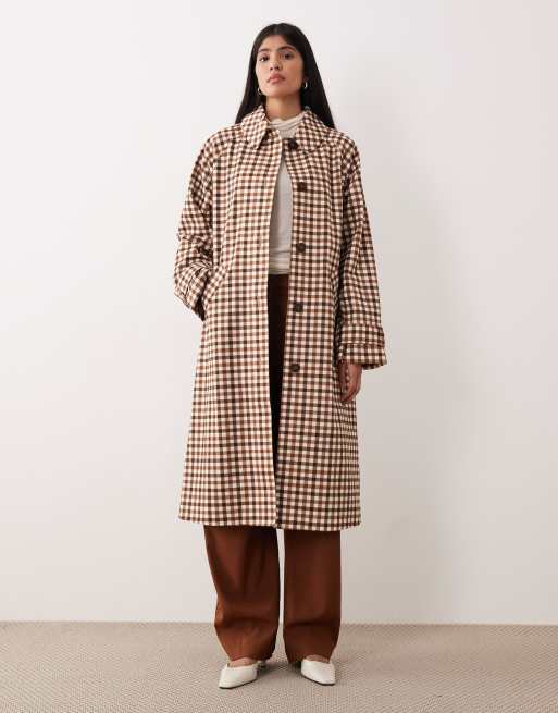 Gabardina larga marrón a cuadros vichy estilo chaquetón de Nobody's Child
