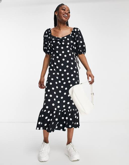 Vestido de tarde negro de cintura imperio con estampado de lunares de Nobody's Child