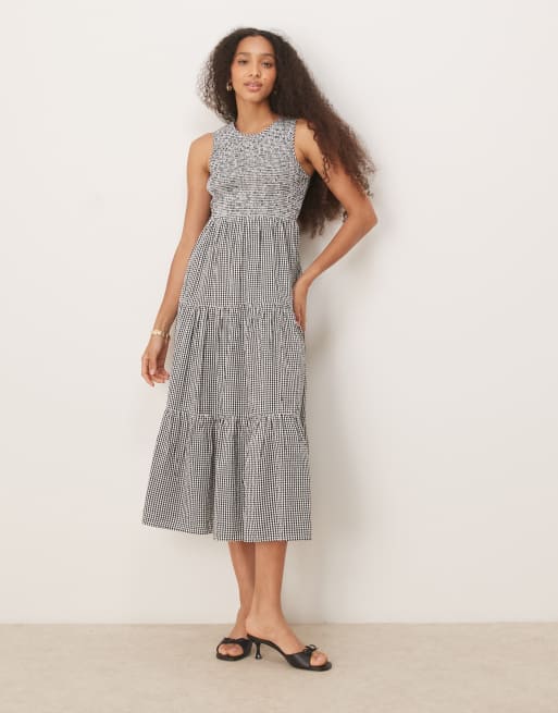 Vestido midi a cuadros vichy monocromáticos escalonado sin mangas de Nobody's Child