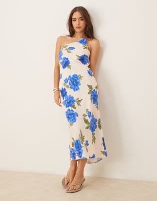 Vestido midi asimétrico con estampado floral azul de satén Ellie de Nobody's Child