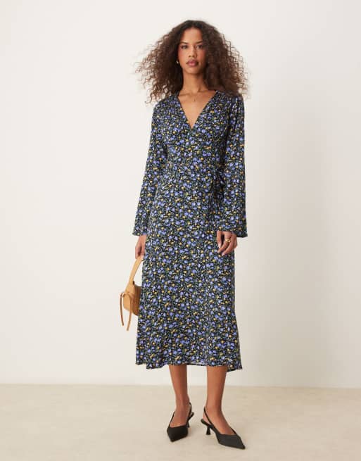 Vestido midi azul y amarillo con estampado de florecitas Lydia de Nobody's Child