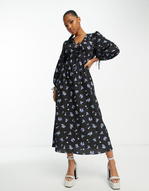 Vestido midi con estampado de florecitas azules y lazadas en las mangas de Nobody's Child