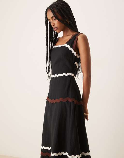 Vestido midi negro con abertura en la espalda y ribetes en zigzag Acacia de Nobody's Child