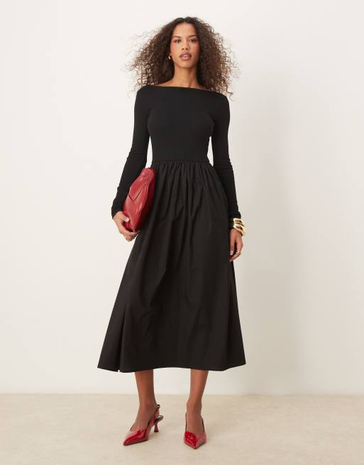 Vestido midi negro con cuello barco Penni de Nobody's Child