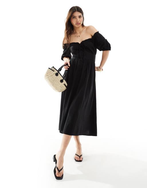 Vestido midi negro con escote Bardot Geneveive de Nobody's Child