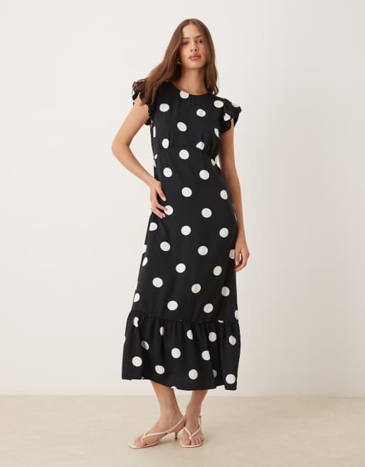 Vestido midi negro con estampado de lunares blancos y volante en las mangas Clara de Nobody's Child