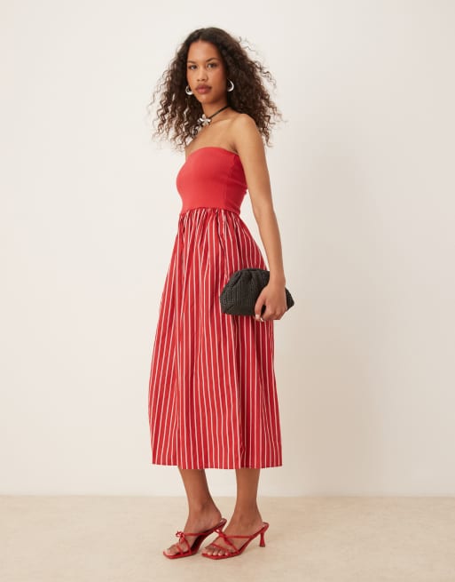 Vestido midi rosa a rayas con escote palabra de honor en contraste Felicity de Nobody's Child