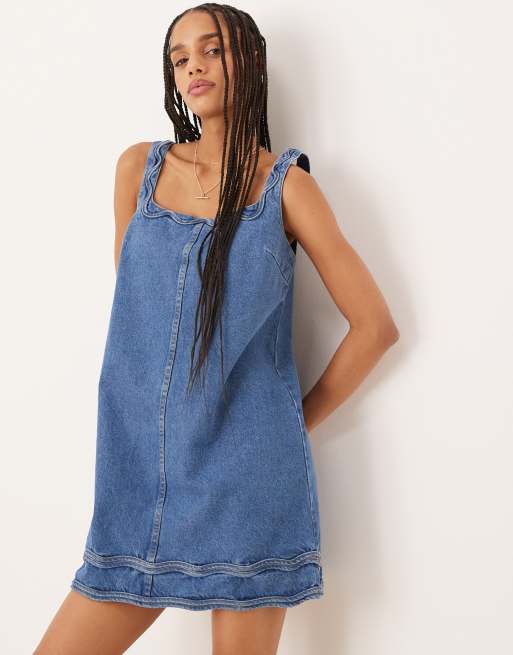 Vestido vaquero corto azul medio con ribetes ondulados Violet de Nobody's Child