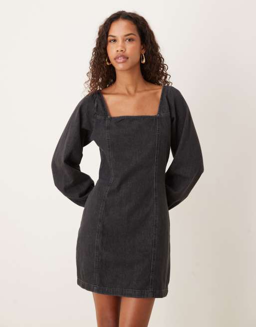 Vestido vaquero corto negro con escote cuadrado Porth de Nobody's Child