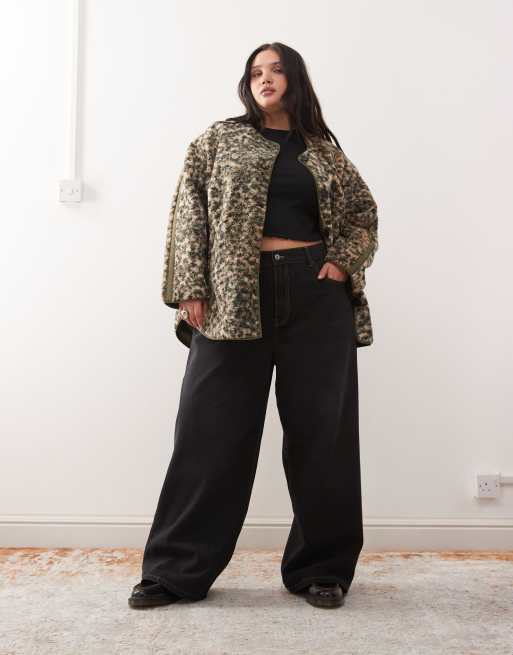 Chaqueta extragrande sin solapas con estampado de leopardo de tejido efecto peluche de Noisy May Curve