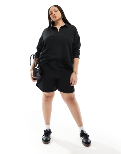 Pantalones cortos negros de talle alto con acabado texturizado de Noisy May Curve (parte de un conjunto)