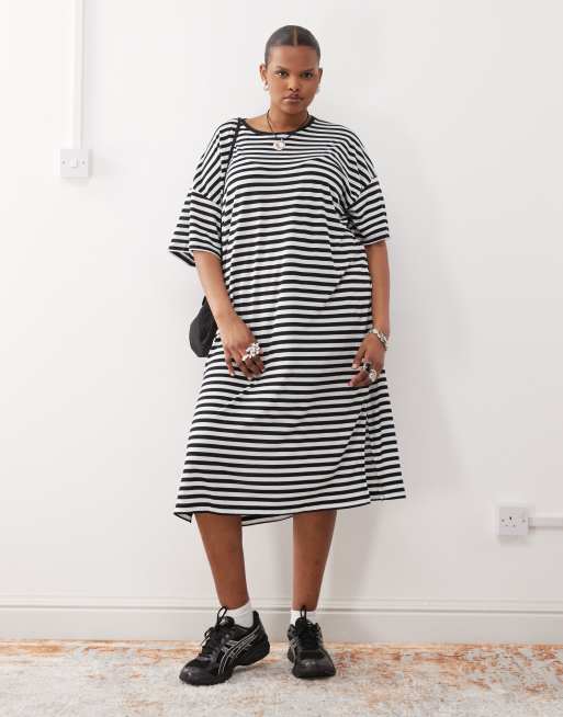 Vestido midi estilo camiseta a rayas negras y blancas de Noisy May Curve