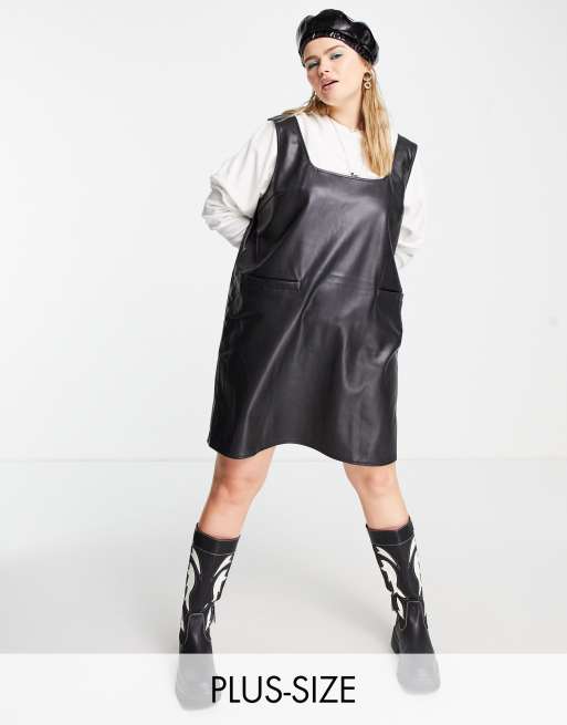 Vestido negro estilo pichi de cuero sintético de Noisy May Curve