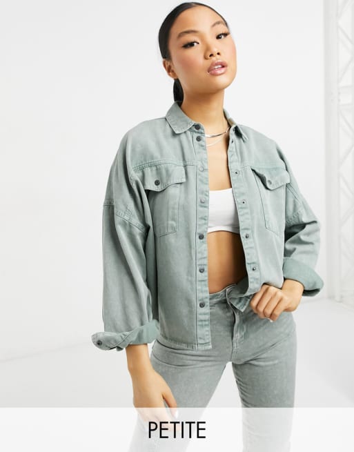 Conjunto denim de camisa y vaqueros grises con lavado ácido de Noisy May Petite