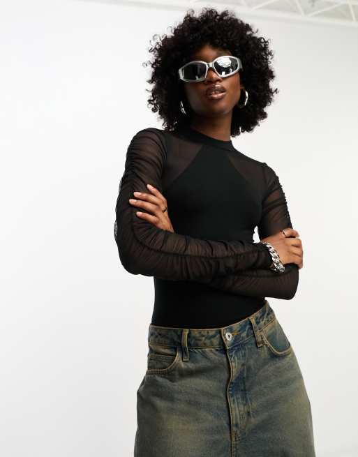 Body negro con aberturas de malla de Noisy May