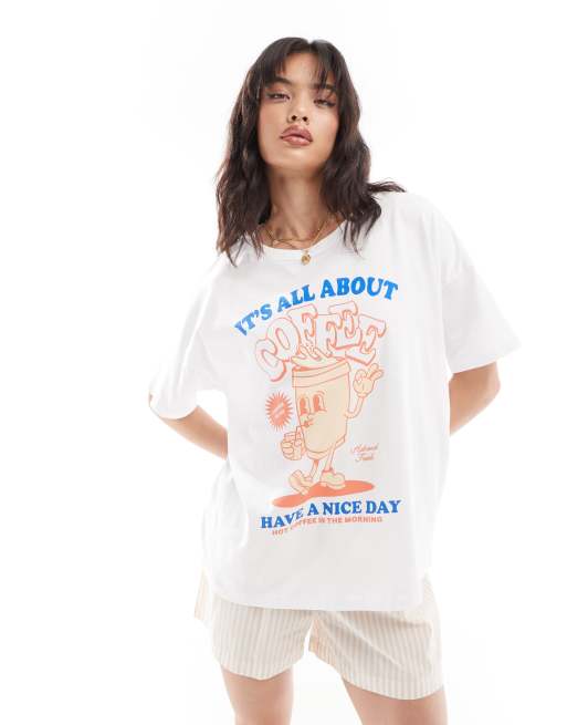Camiseta blanca extragrande con estampado "Coffee" de Noisy May