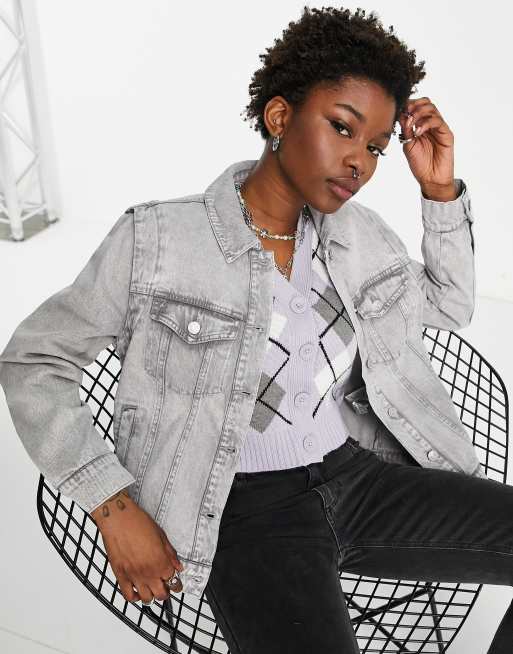 Chaqueta vaquera gris claro de corte girlfriend Leonie de Noisy May