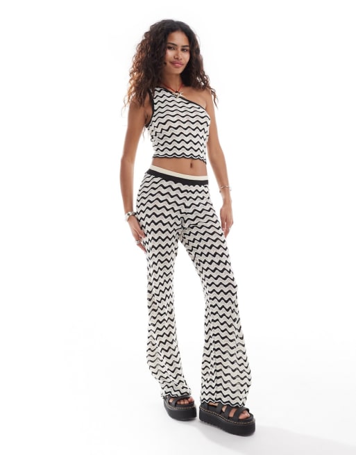 Conjunto blanco y negro a rayas onduladas de punto calado de Noisy May
