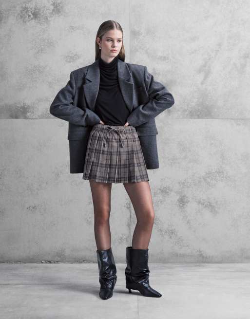 Minifalda beis a cuadros de talle alto de tablas de Noisy May