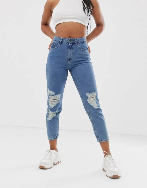 Vaqueros Mom desgastados en azul de Noisy May