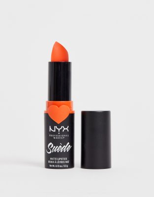Lápiz de labios naranja Suede Matte de NYX Professional Makeup - Orange County