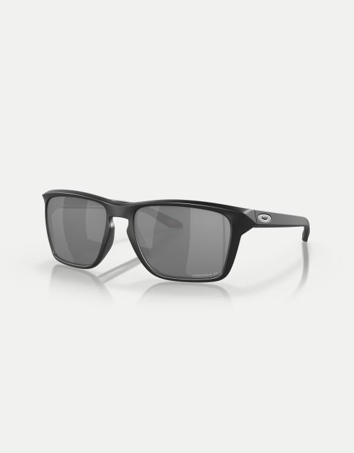Gafas de sol negro mate con montura rectangular y lentes grises efecto espejo polarizadas Sylas de Oakley