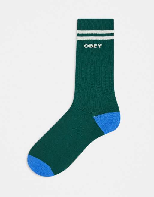 Calcetines verdes de estilo futbolero con estampado gráfico del logo de Obey