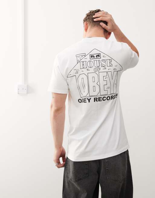 Camiseta blanca con estampado gráfico "House of Obey Records" de Obey
