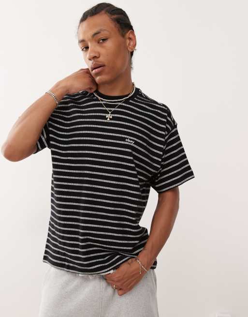Camiseta negra a rayas blancas holgada con logo Observe de Obey